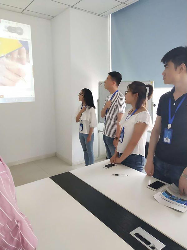 首先兩位新加入同事認(rèn)真的將自己的右手握拳舉到胸口,在公司領(lǐng)導(dǎo)及各位同事的見證下莊嚴(yán)宣誓,“我是艾易網(wǎng)絡(luò)的第14名,15名戰(zhàn)士,今天我莊嚴(yán)宣誓,用責(zé)任心做事,用感恩心做人......”真正的成為了一名艾易人。