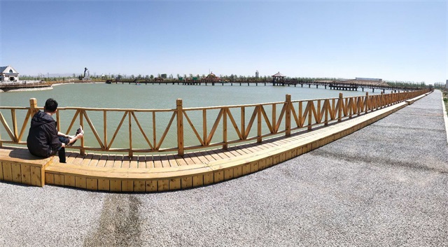 大約一個小時的車程,我們到達(dá)了目的地,入眼便是迷人的風(fēng)景,疾馳在操場上的馬兒,不遠(yuǎn)處還有人造湖,可以看到還有幾艘小船蕩漾在湖面上。