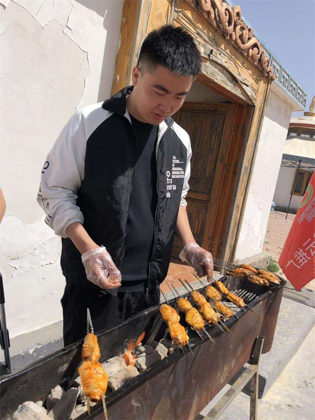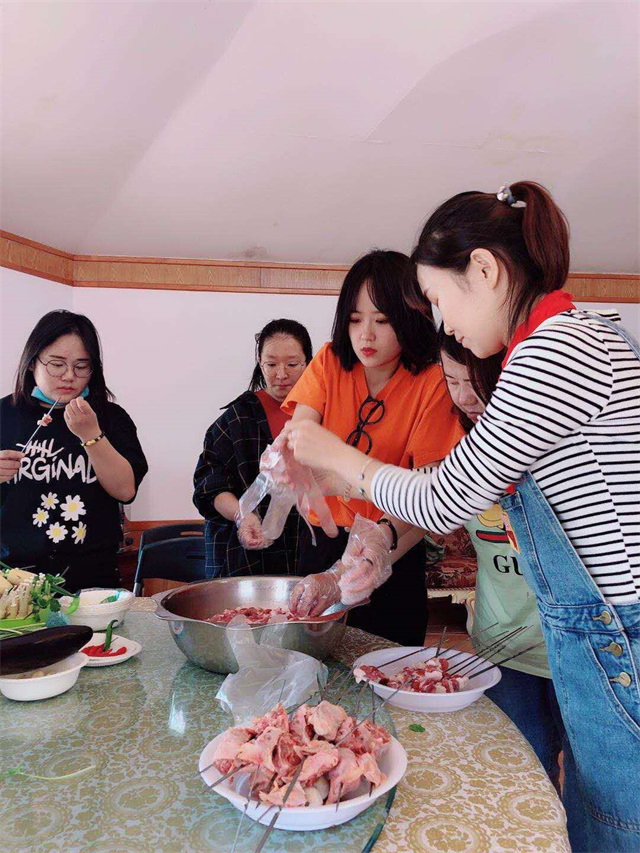 游戲過后,大家將提前準(zhǔn)備的食材等物品拿到蒙古包,開始了戶外燒烤的準(zhǔn)備工作,洗菜、穿串串、準(zhǔn)備燒烤架等,分工明確,每個人都積極投入,很快烤串的香味彌漫在空氣中,烤串新鮮出爐。不 會燒烤的同事,也嘗試著做起了燒烤師傅,品味其中的樂趣,愉快得進(jìn)行中午餐時光。