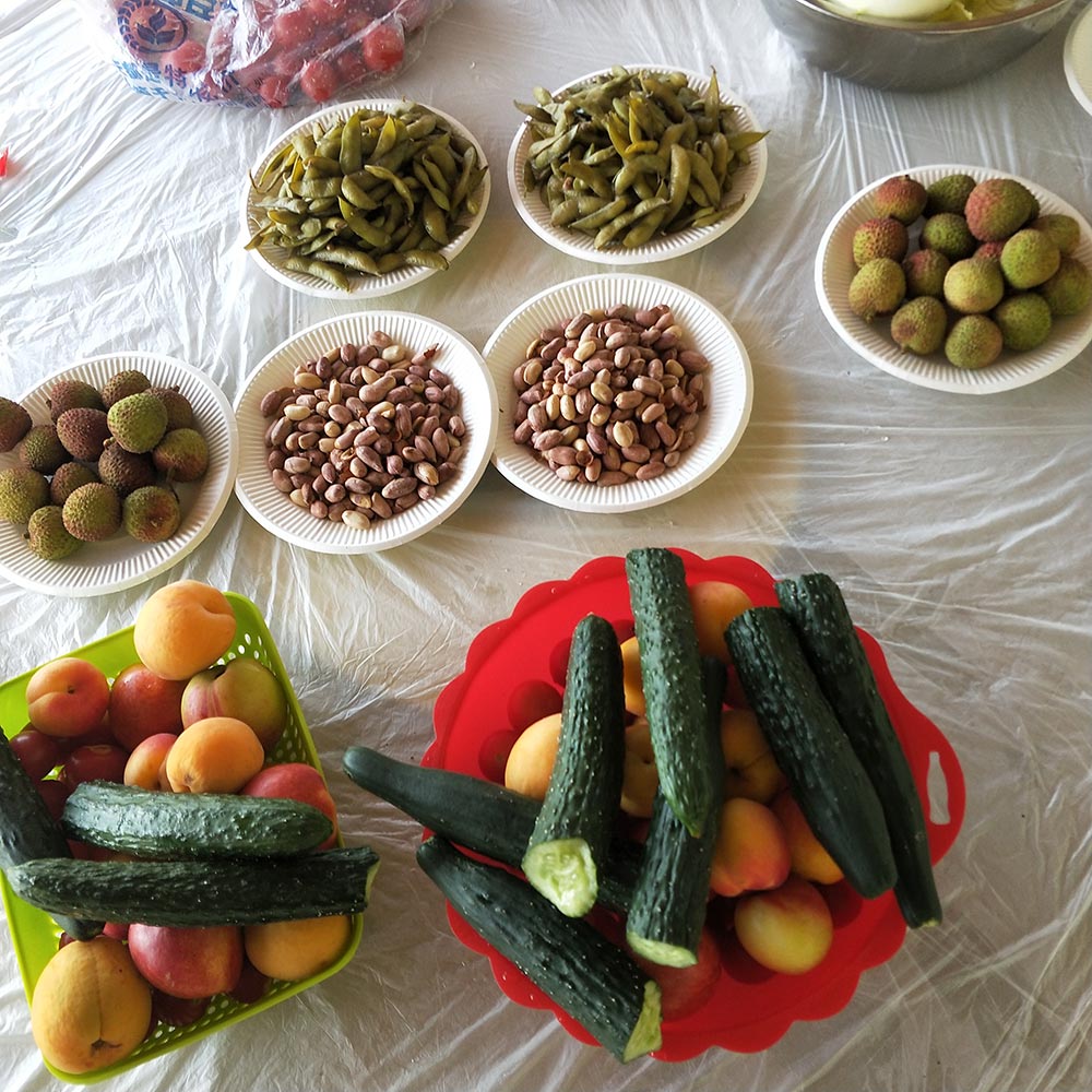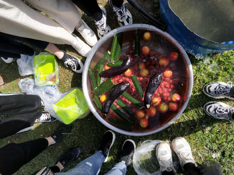 閑逛過后坐等美食上桌嘍,豆腐皮裹韭菜、培根裹金針菇、羊肉串、牛板筋、烤饅頭片、烤土司,各樣的水果與蔬菜滿足了饞饞的胃口。