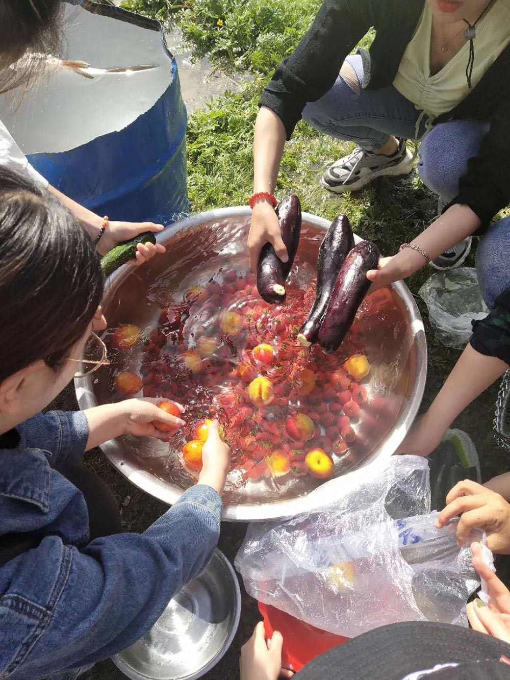 清洗著繽紛色彩的水果與蔬菜的我們