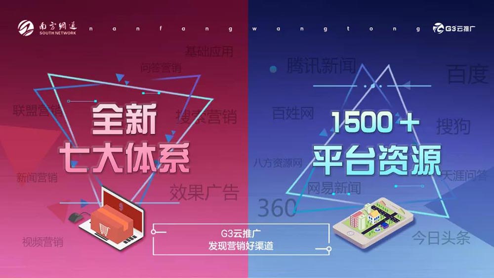 G3云推廣推廣應(yīng)用有17個(gè),整合了市面上多種的推廣方式。G3云推廣會(huì)為企業(yè)策劃一整套的推廣方案!