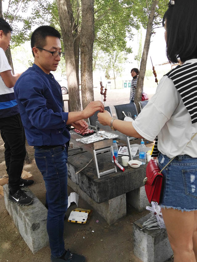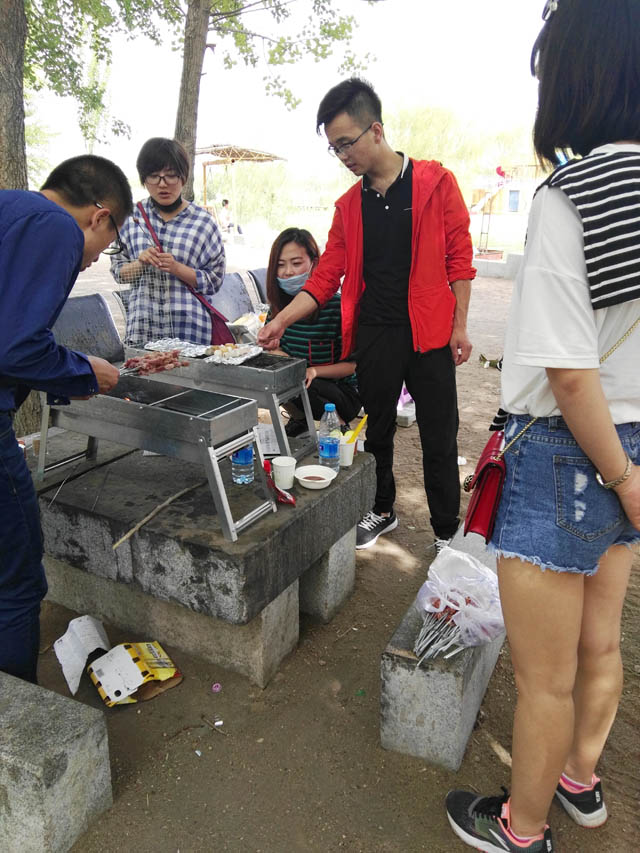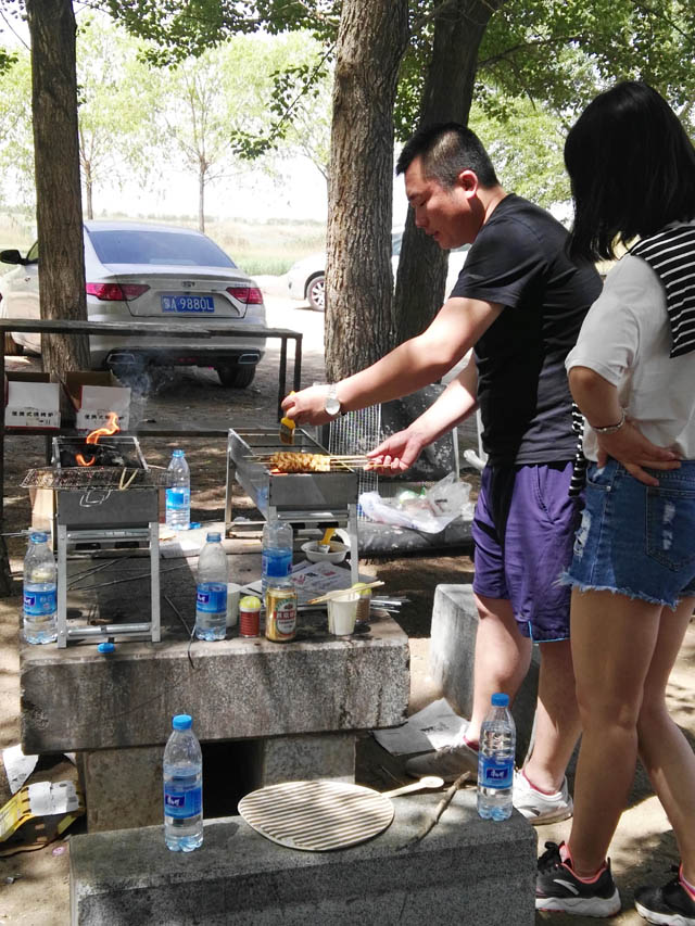 在燒烤的過程中,大家自己動(dòng)手,享受美味的同時(shí),呼吸著大自然獨(dú)有的味道,平時(shí)生活和工作中的緊張,此時(shí)此刻早已拋之腦后。雖然,自己烤的食物比不上燒烤店的味道,有股糊味兒,但是大家都樂在其中。